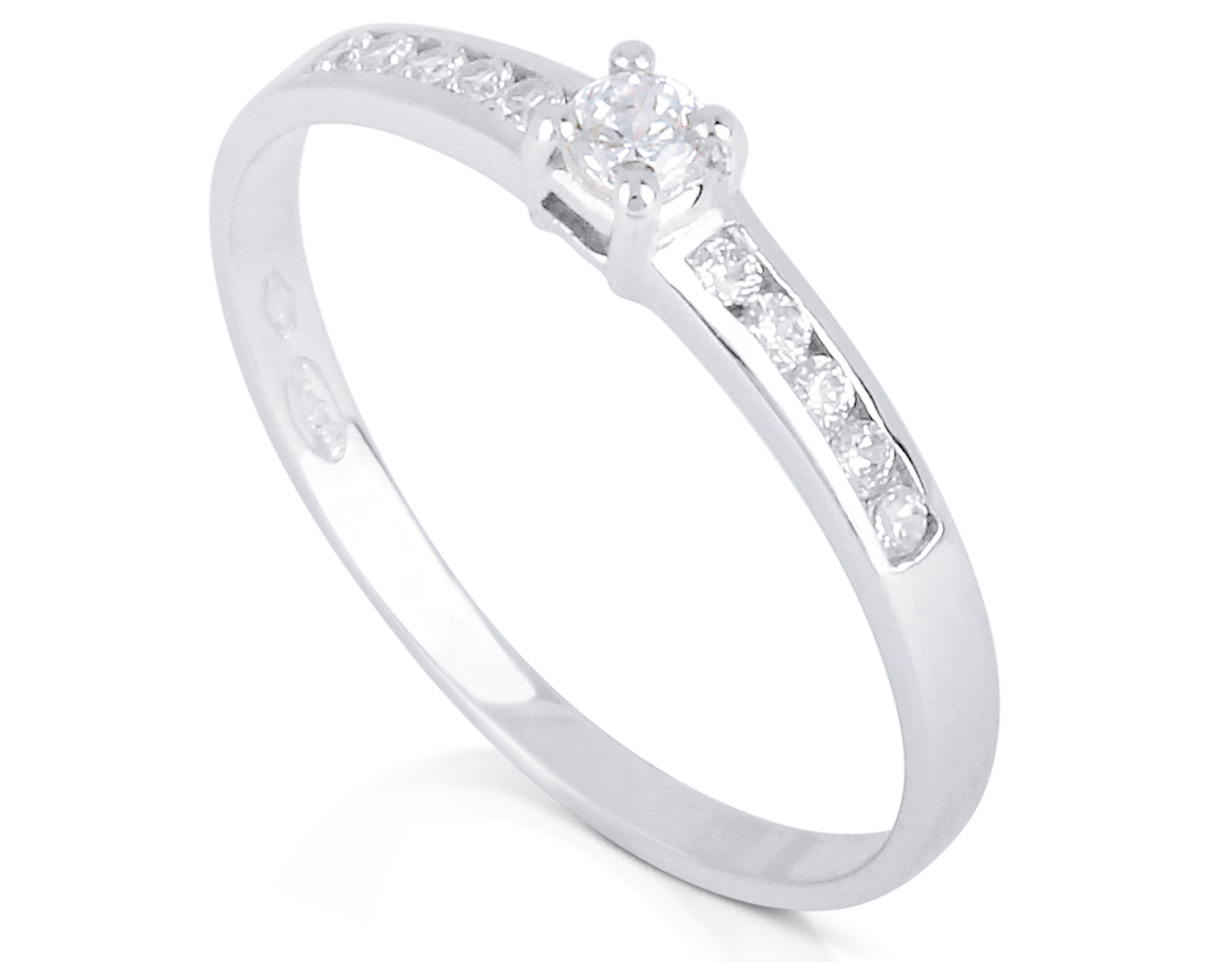 La pièce maîtresse de cette bague est un diamant central rond de qualité G/SI, taillé pour maximiser son éclat. Il est mis en valeur par un serti à quatre griffes, qui assure un excellent maintien et une exposition optimale à la lumière. L’anneau est orné de part et d’autre de petits diamants, avec un poids totale de 0,20 ct, disposés sur un serti rail, qui ajoutent une touche de brillance supplémentaire à la bague. Ce modèle est disponible avec différents poids en carats pour la pierre centrale, de 0,10 ct, 0,20 ct ou 0,30 ct, vous permettant de choisir l’éclat qui correspond à votre style.