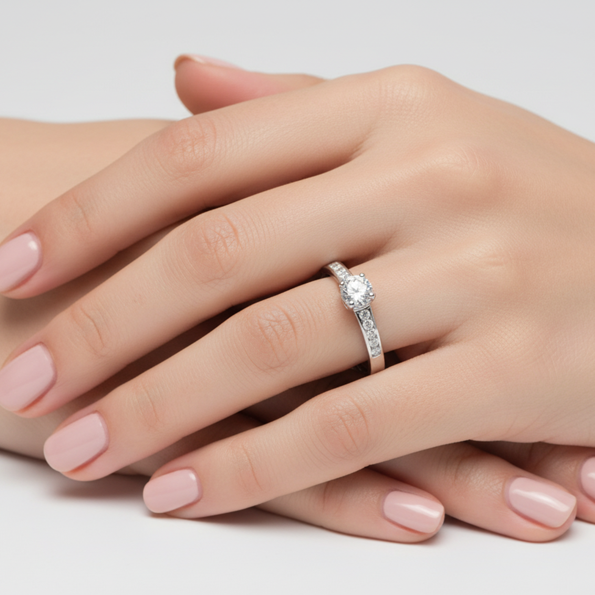 Réalisé en or blanc 750/1000 (18 carats), cette bague bénéficie d’une finition polie qui lui confère une brillance élégante. Le poids de l’or est soigneusement ajusté pour garantir un équilibre parfait et un confort optimal et évolue selon la taille du diamant central choisi : de 1,40 g pour le 0,10 ct jusqu’à 1,50 g pour le 0,30 ct. Chaque détail de la monture est travaillé avec soin pour un rendu harmonieux et durable, à l’image des pièces de haute joaillerie.