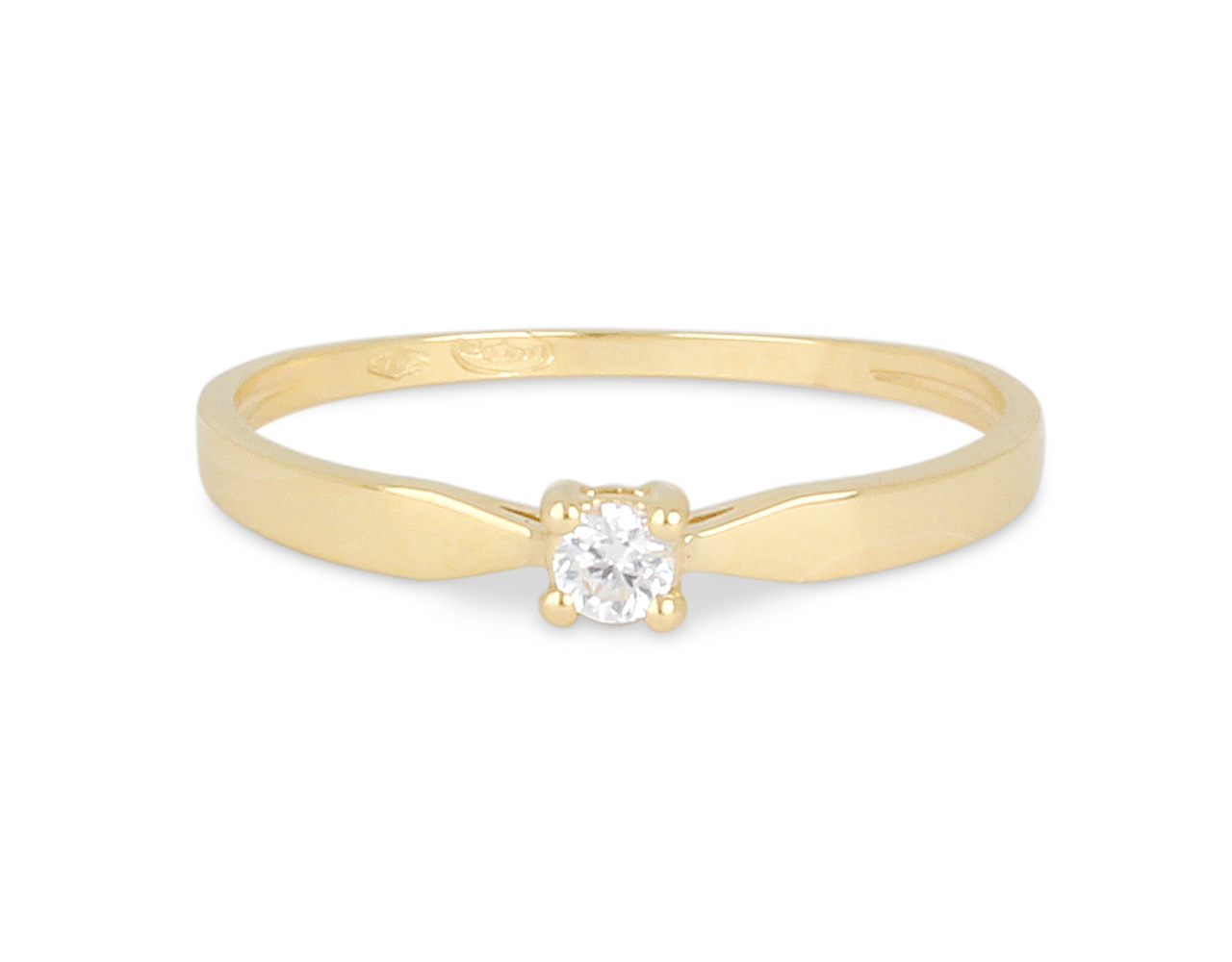 Le diamant central est de qualité G/SI, offrant un très bel équilibre entre éclat, transparence et accessibilité. Sa taille pleine de lumière permet d’apprécier chaque facette du diamant, mise en valeur par un serti chaton à quatre griffes. Ce modèle est disponible en plusieurs caratages : 0,07 ct, 0,10 ct, 0,15 ct, 0,20 ct, 0,25 ct ou 0,30 ct, permettant à chacune de choisir l’éclat qui correspond à son style et à son intention.