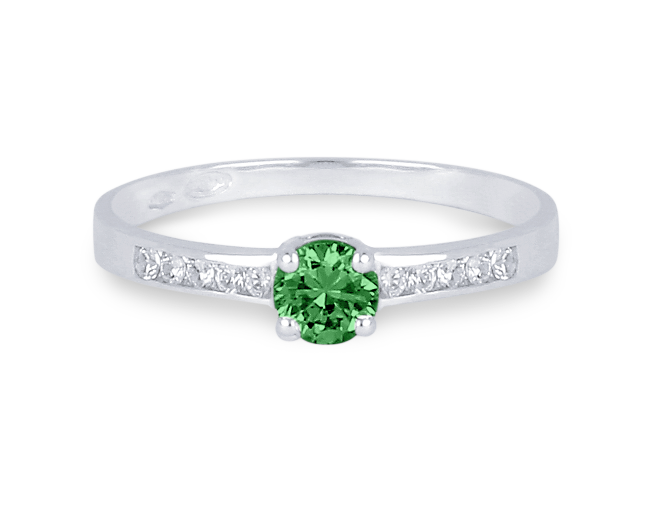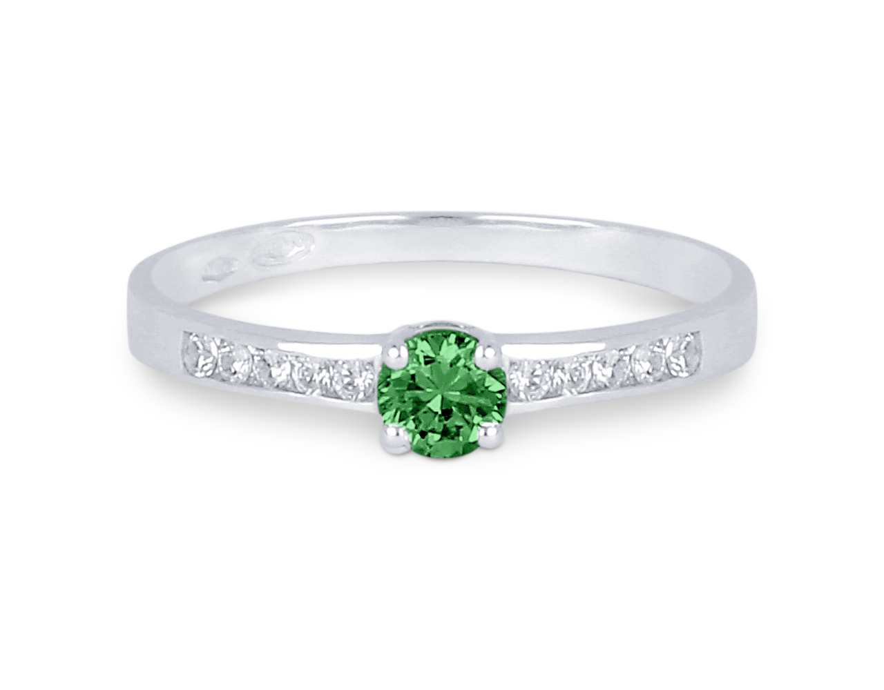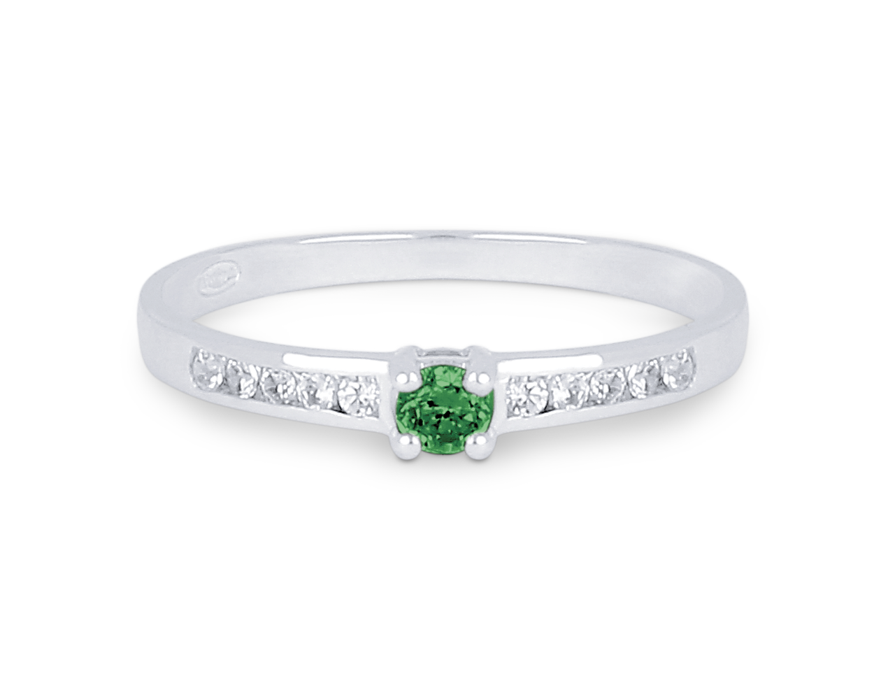 La pièce maîtresse de cette bague est une émeraude centrale ronde, taillée pour maximiser sa couleur et son éclat. Elle est mise en valeur par un serti à quatre griffes, qui assure un excellent maintien et une exposition optimale à la lumière. L’anneau est orné de part et d’autre de petits diamants, avec un poids totale de 0,20 ct, disposés sur un serti rail, qui ajoutent une touche de brillance supplémentaire à la bague. Ce modèle est disponible avec différents poids en carats pour la pierre centrale, de 0,10 ct, 0,20 ct ou 0,30 ct, vous permettant de choisir l’éclat qui correspond à votre style.