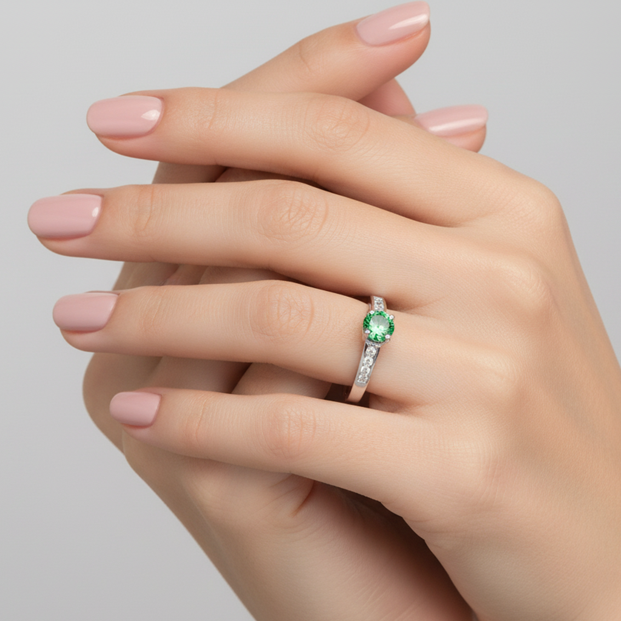 Astuce : Associez-le à une paire de puces d’oreilles en émeraude ou à un collier fine en or blanc pour un ensemble discret et parfaitement harmonisé.