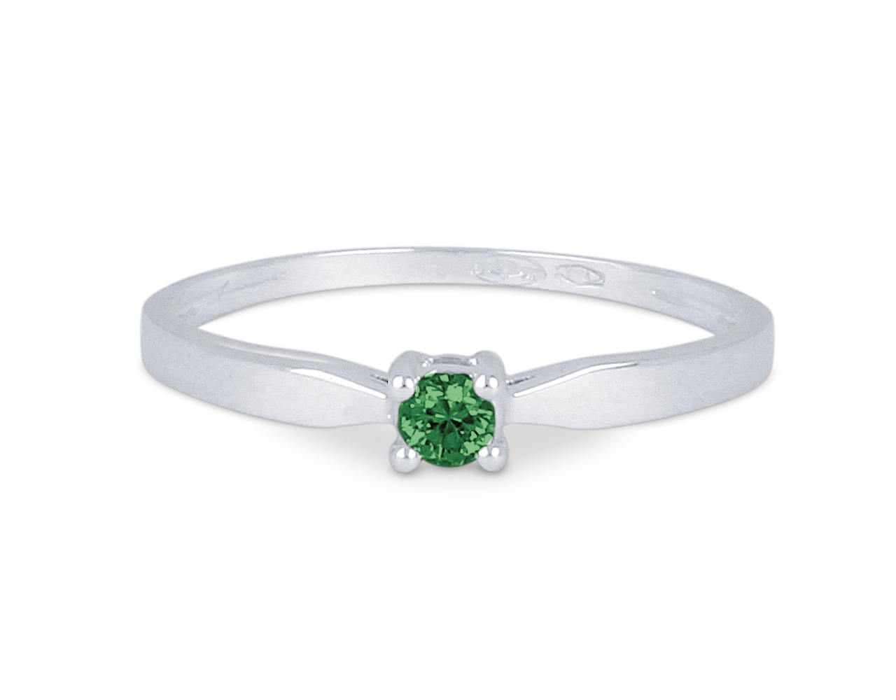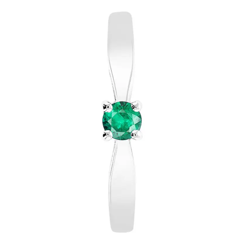 La pièce maîtresse de cette bague est une émeraude ronde, taillée avec précision pour révéler tout son éclat et sa couleur profonde. La pierre est mise en valeur par un serti chaton à quatre griffes, une technique classique qui assure un maintien sûr tout en exposant l’émeraude à la lumière pour maximiser sa brillance. Cette bague est disponible avec des émeraudes de différents poids en carats : 0,07 ct, 0,10 ct, 0,20 ct ou 0,30 ct, vous permettant de choisir la taille qui correspond le mieux à votre style.