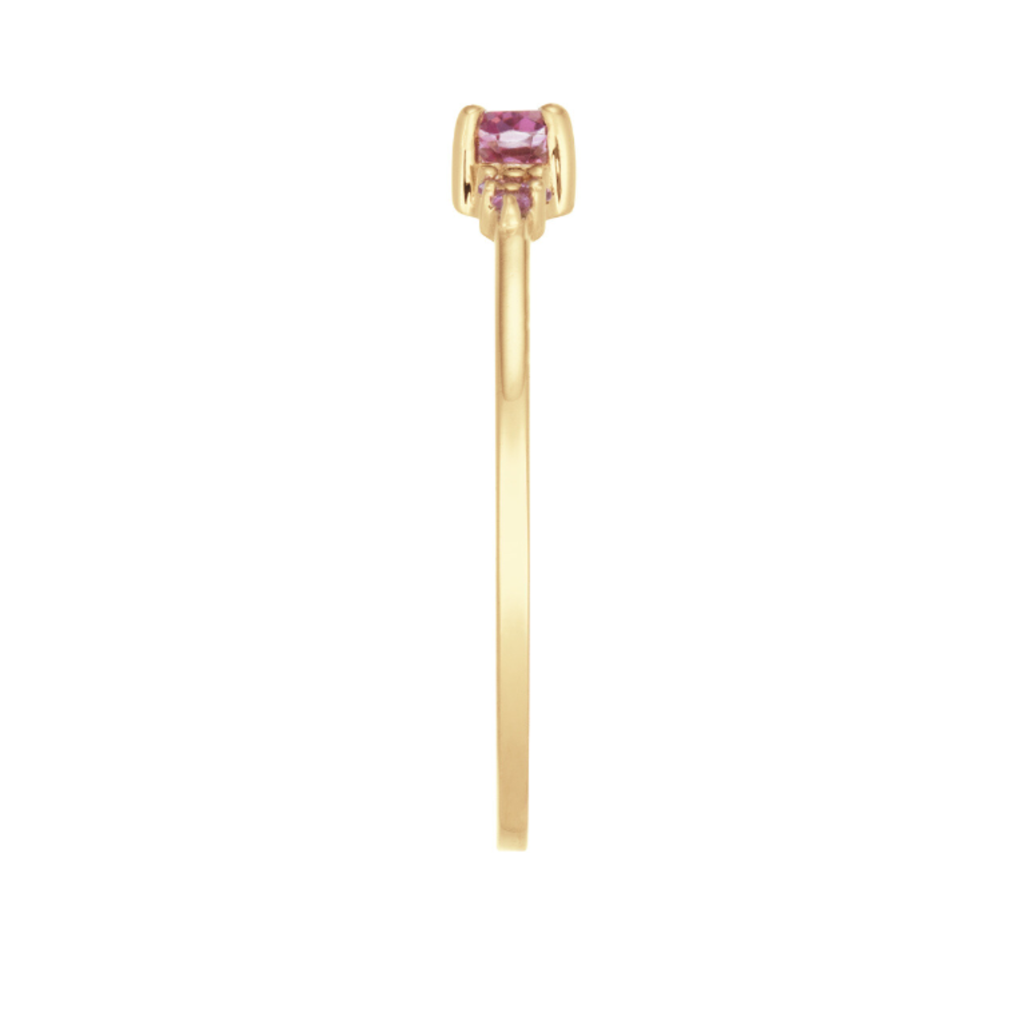 Le cœur de cette bague est dominé par une magnifique Topaze Rose. Cette pierre fine se distingue par sa couleur délicate et romantique, offrant des nuances douces qui captent et réfléchissent la lumière avec subtilité. La taille de la Topaze, taillée de manière à maximiser sa brillance et sa profondeur chromatique, est mise en valeur par un sertissage sécurisé. La Topaze Rose est traditionnellement associée à la douceur et à l’affection.