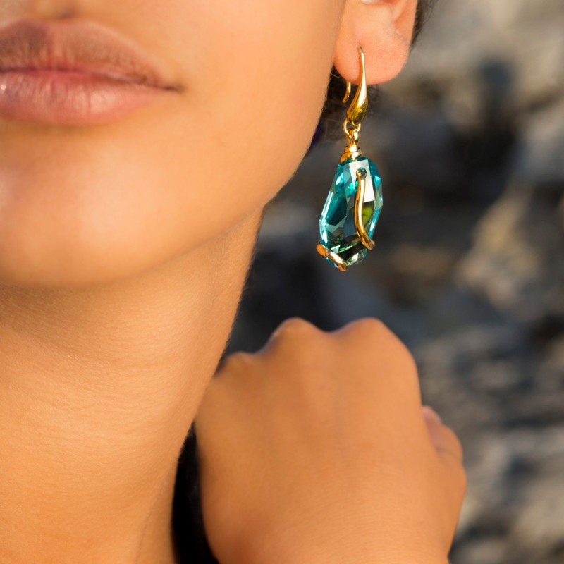Une explosion de lumière et de couleur ! Ces boucles d’oreilles Marazzini artisanales italiennes allient des cristaux aux reflets envoûtants, délicatement sertis dans une monture dorée. Leur design audacieux illumine le visage et sublime toutes vos tenues, du quotidien aux grandes occasions.