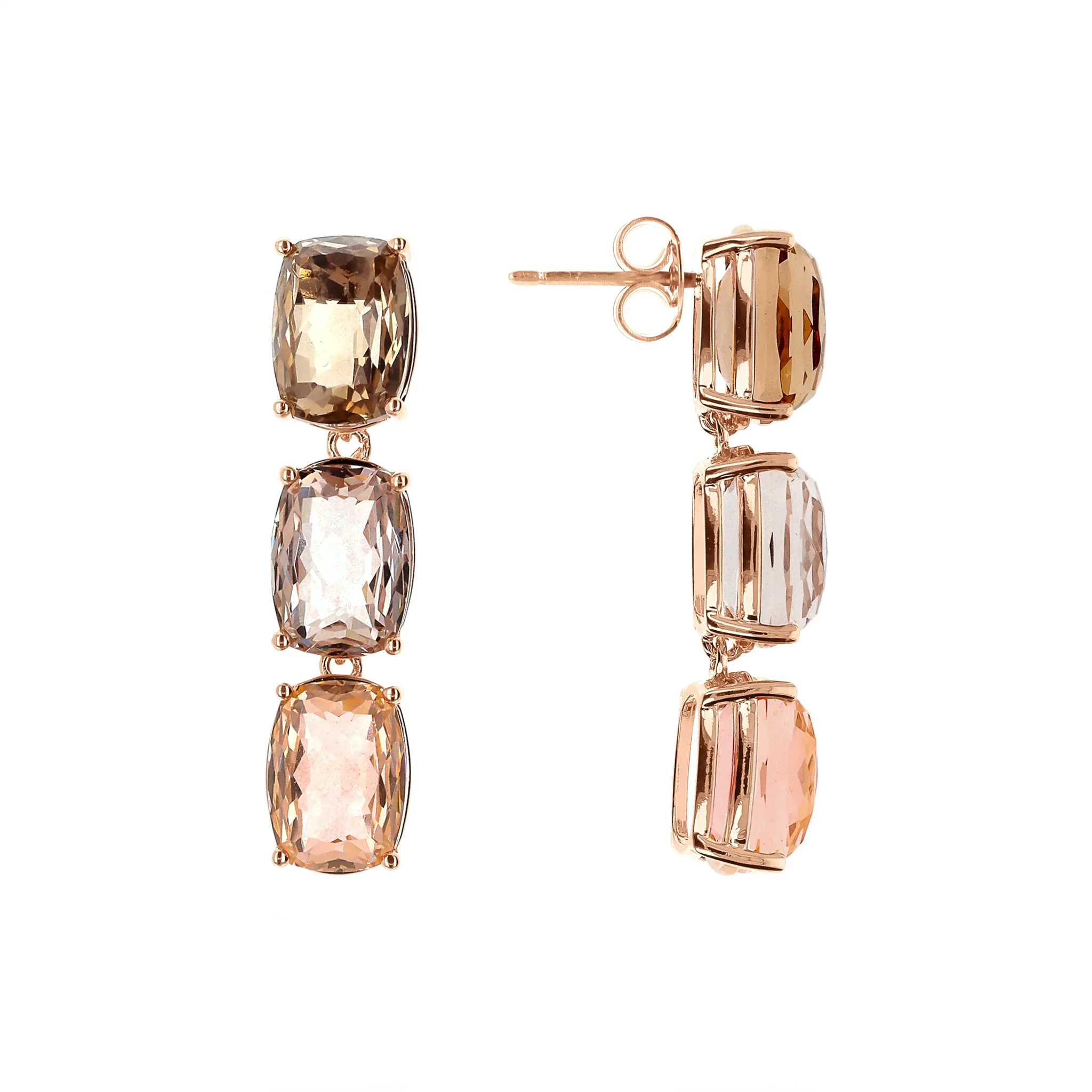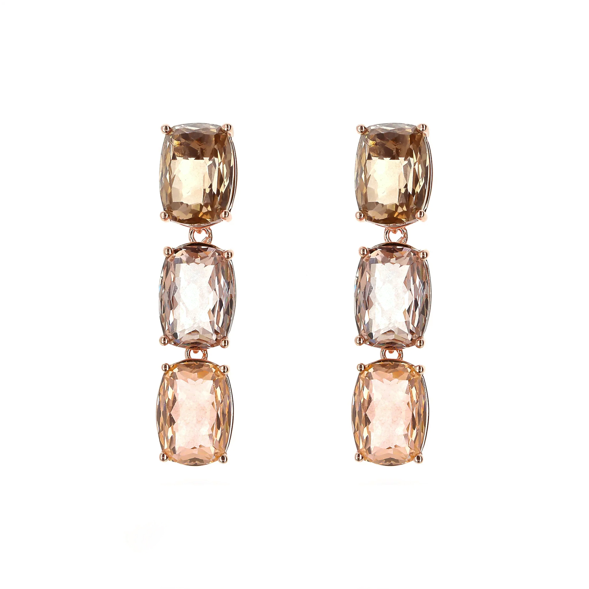Ces boucles d’oreilles pendantes sont agrémentées de pierres ‘prisma gem’ rectangulaires (8×11 mm) de taille mosaïque. Elles sont sécurisées par un fermoir épingle et papillon. Elles sont disponibles dans une variété de couleurs, incluant le vert et le bleu.